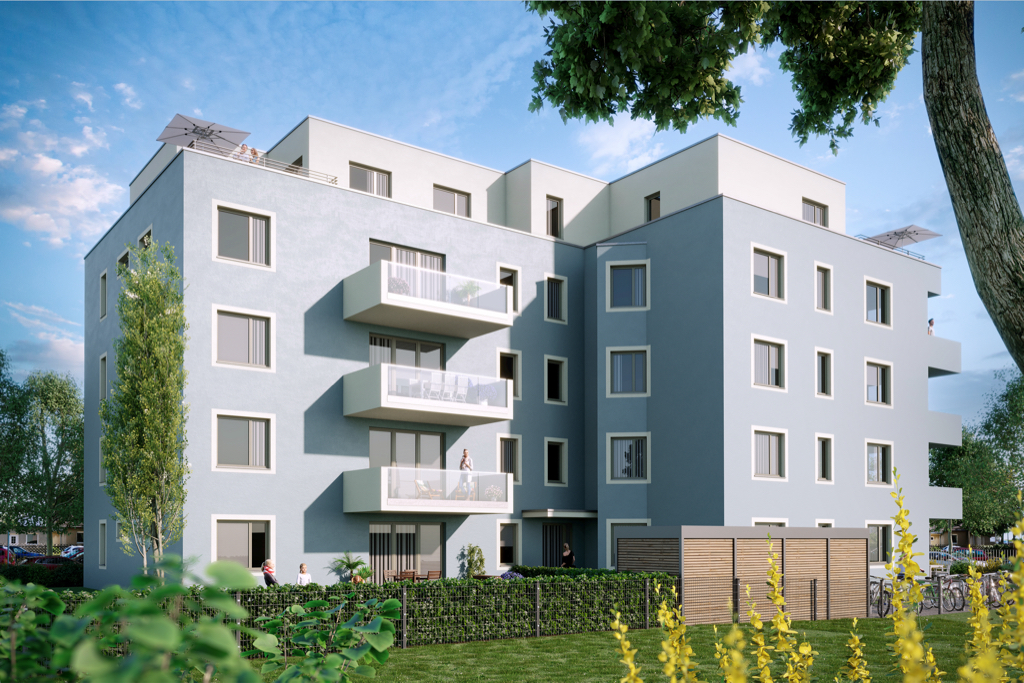 –– Oktober 2022 –– Im Berliner Bezirk Reinickendorf entwickelt W&N einen modernen Wohnkomplex mit 14 Eigentumswohnungen. Der 3-geschossige Neubau mit Staffelgeschoss in der General-Barby-Straße bietet 2- bis 4-Zimmer-Wohnungen mit einer Fläche von 53 bis 99 m2. Außerdem verfügt jedes der lichtdurchfluteten Apartments über einen großzügigen Garten oder Balkon. Das Bauvorhaben mit ca. 7.100 m² BGF wird im Sommer 2023 vollendet und ist bereits vollständig an Einzeleigentümer verkauft.