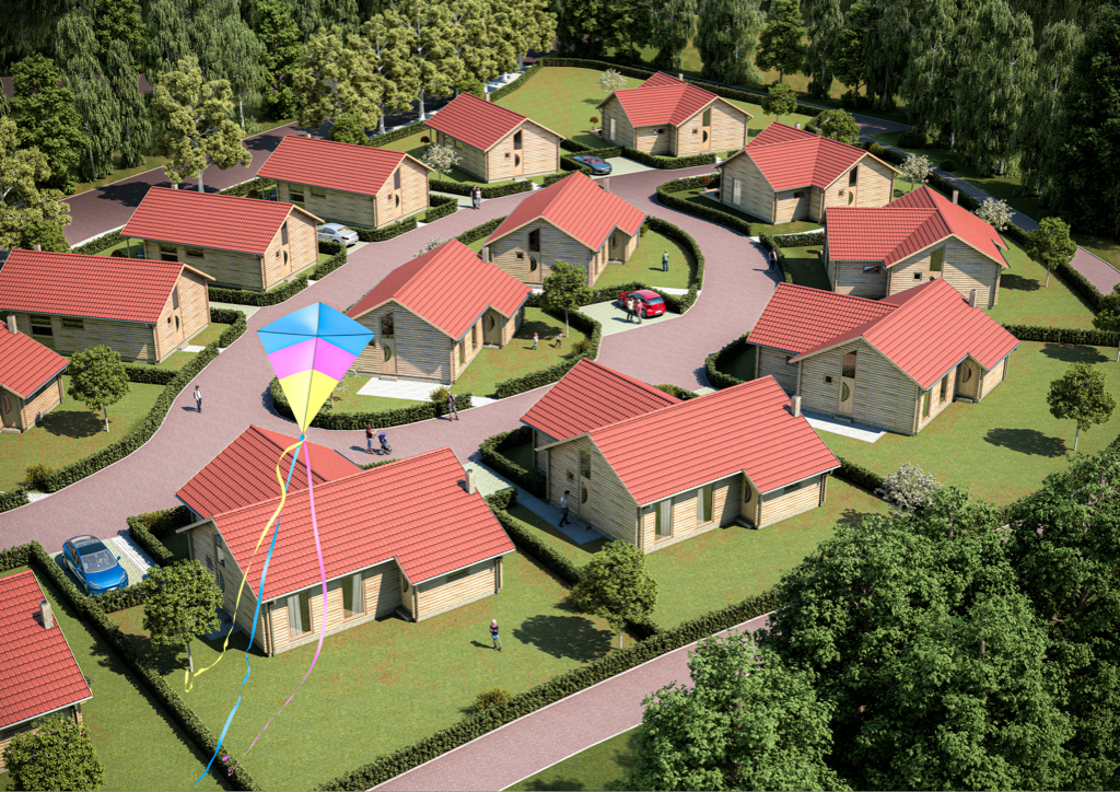 Juli 2023 –– Im oberfränkischen Städtchen Bischofsgrün plant W&N einen Ferienpark mit nachhaltiger Holzmodul-Bauweise: 17 gemütliche Blockhäuser in dörflicher Struktur. Für eine nachhaltige und wirtschaftliche Bauweise kooperiert W&N mit einem auf innovative Holzmodule spezialisierten Hersteller. Bereits 2019 hatte W&N das Konzept für das Feriendorf entwickelt, das die Bürger 2020 über einen Bürgerentscheid bestätigten. Seitdem bereitet die Gemeinde das Baurecht mit verschiedenen Prüfverfahren und der Baugenehmigung vor. 2024 ist der Projektstart mit ersten Modellhäusern geplant.