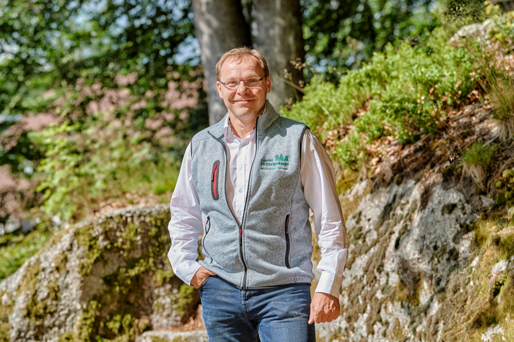 Ferdinand Reb Dipl.-Geograf Univ., Geschäftsführer der Tourismuszentrale Fichtelgebirge e. V. –– Ich bin am liebsten an unseren zahlreichen Quellflüssen unterwegs: Eger, Saale, Naab und Main entspringen alle im Fichtelgebirge – und das auf engstem Raum. Sehr gerne fahre ich mit dem Fahrrad im Egertal, da es hier auch einen neuen Radweg durch die Natur gibt. Letztendlich ist es das Wasser im Wald, das mich fasziniert.